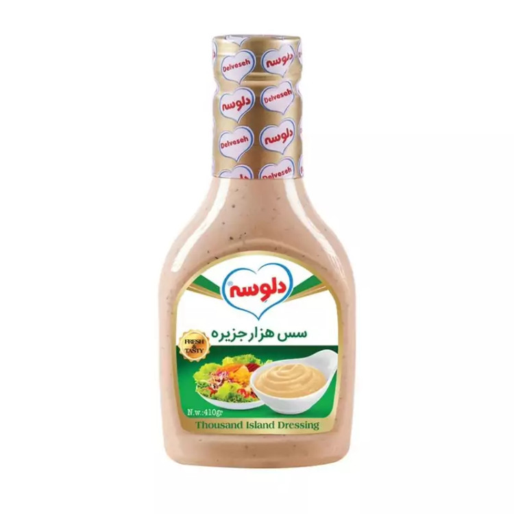 سس هزار جزیره 410 گرم دلوسه چاشنی و همراه انواع غذاهای گرم و سرد و سالاد ها می باشد. ترکیبات اصلی این سس را سس کچاپ تشکیل داده. ترکیبات این محصول روغن مایع، سبزیجات، سرکه، تخم مرغ، شکر، رب گوجه فرنگی، نمک، پودر خردل، ادویه، پایدار کننده، بنزوات سدیم، سوربات پتاسیم، اسیدسیتریک، ادویه و آب می باشد. ارزش غذایی در 30 گرم انرژی 151.26 کیلو کالری، قند 1.38 گرم، چربی 15.24 گرم، نمک 0.76 گرم، اسید های چرب ترانس 0 گرم می باشد.